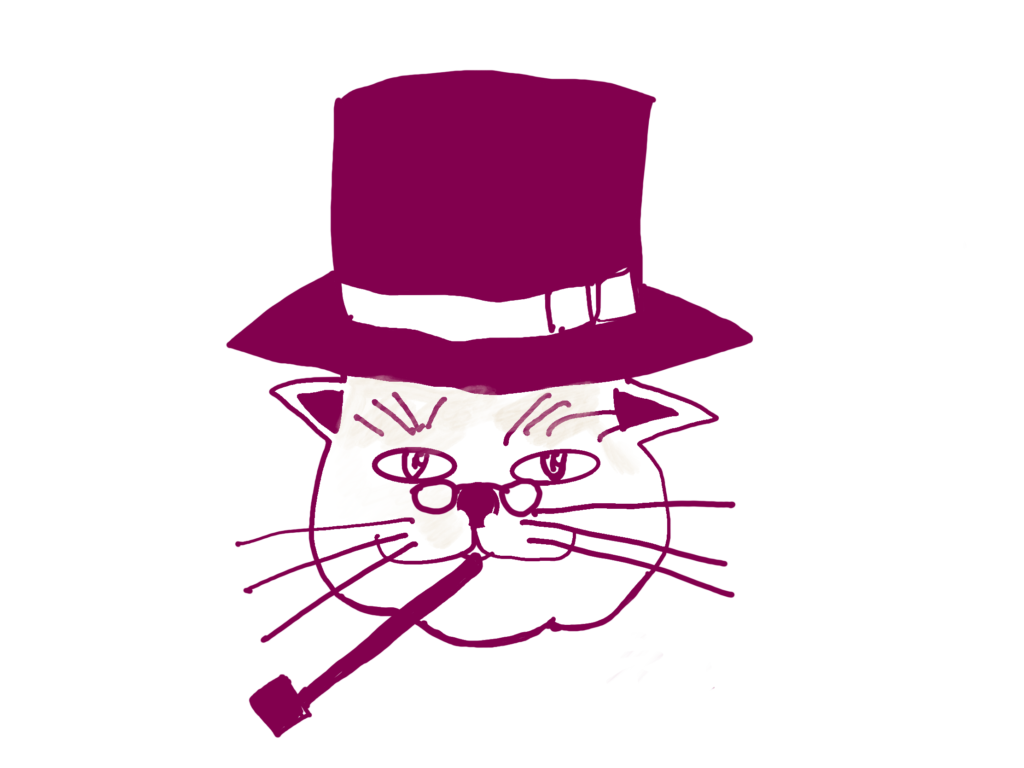 弊社のキャラクターとして、”帽子をかぶった猫”(名前はまだない)がいます。皆様に、親しみやすいキャラクターとして活躍する予定です。